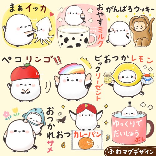 ゆるい♪やさしい大人可愛いシマエナガのだじゃれスタンプ作ってみました♪